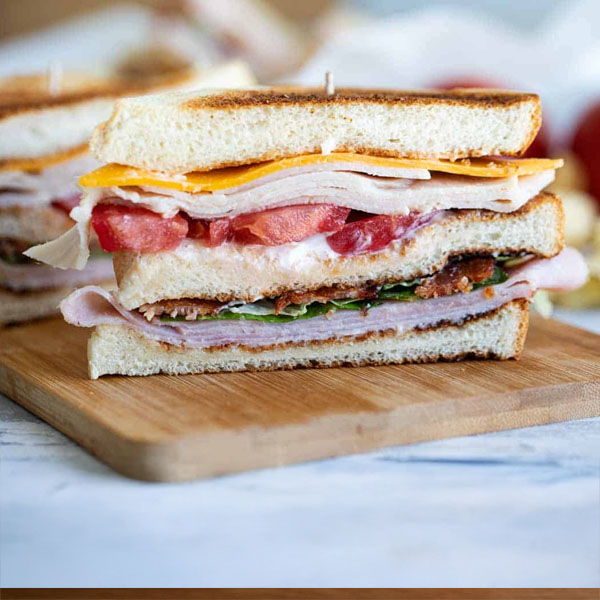 Turkey, Bacon, Ham, Chive & Onion, Aioli, Lettuce & Tomato